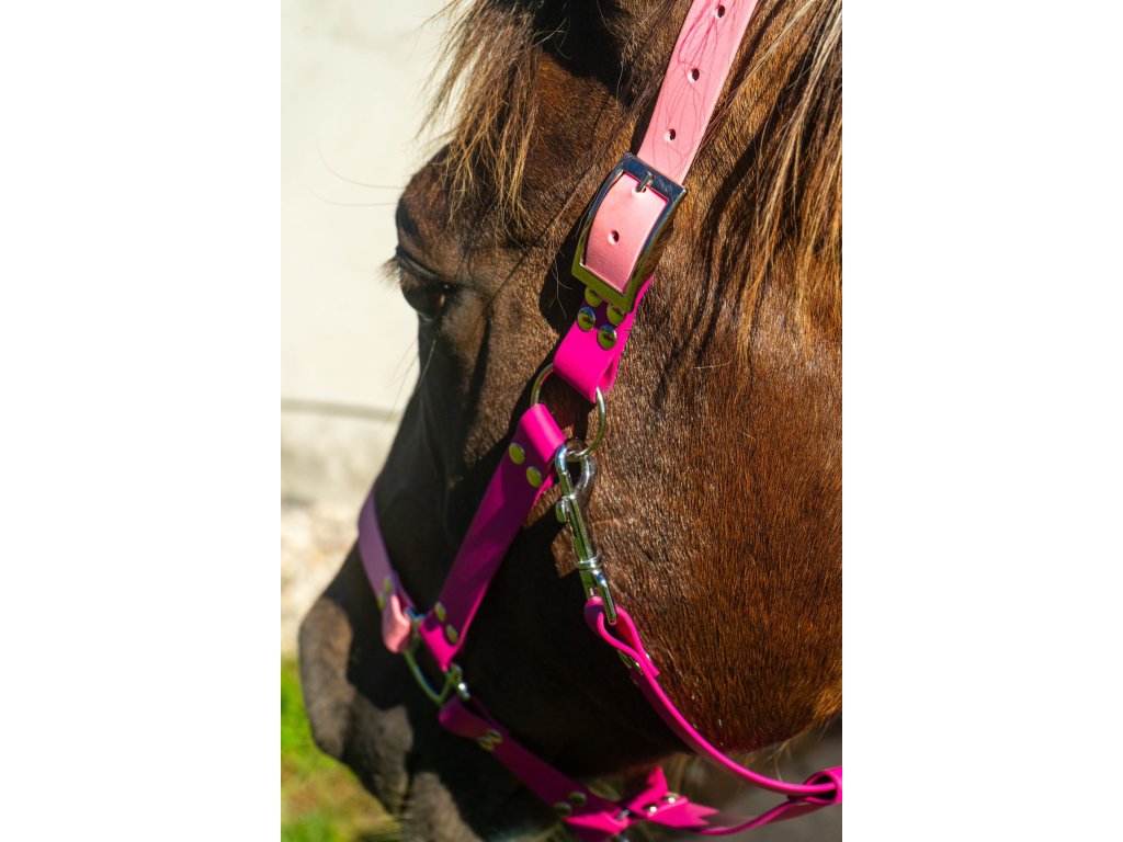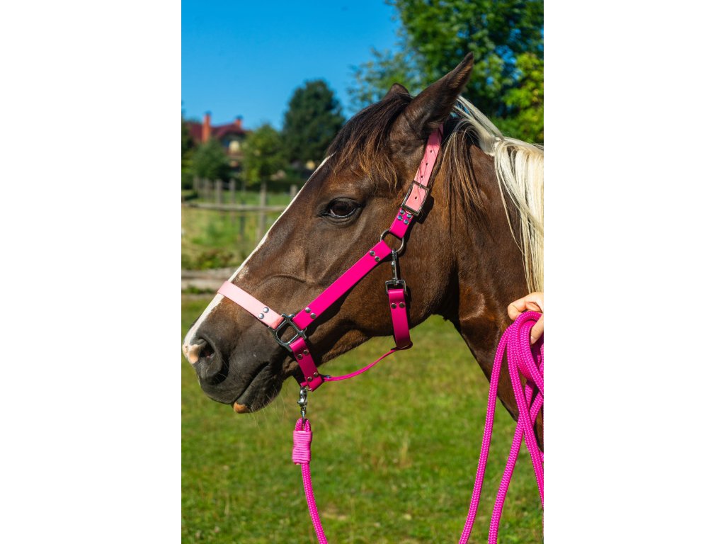 Voděodolná Biothane ohlávka je luxusní doplněk pro vašeho koně. Je odolná, voděodolná a spojuje styl s funkčností. Vyrobená z inovativního materiálu Biothane, který imituje kůži, ale přitom je lehčí, pružnější a mnohem odolnější vůči opotřebení.
